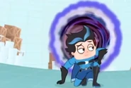 Similar to how Guy Hamdon became SheZow, Gal found a power ring that belonged to her late Uncle, the original DudePow. Now, DudePow is granted with super strength, speed, and an arsenal of crime fighting gadgets. Being known as one of the largest, and most beloved super heroes in the Alternate version of Megadale. Fighting crime alongside her best friend Maizy Kepler, her "twin" brother Kelli Hamdon, and her super computer; Dudley. Keeping the city safe from the likes of Grilla and other evil doers.
